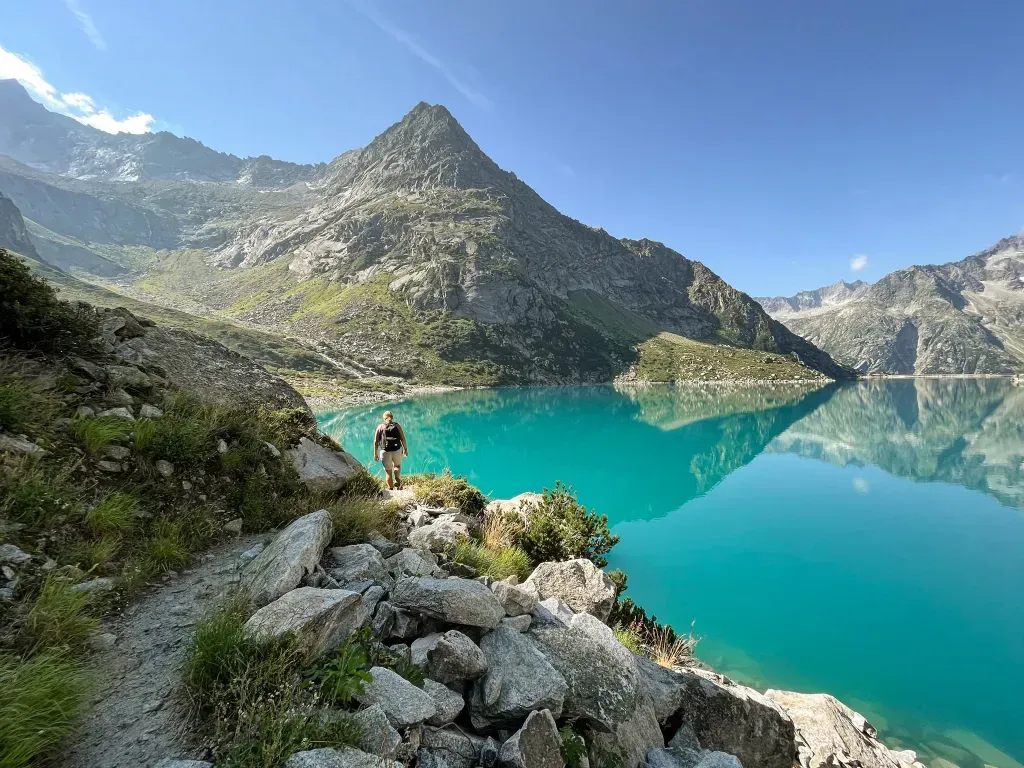 Die Gelmerhütte ist ein echtes Bergjuwel: Wanderer wie Katja und Fabi genießen auf dem Hinweg den traumhaften See mit seinem glasklaren Wasser. Dabei passieren sie immer wieder sprudelnde Bachläufe und einen Wasserfall, der sein kühles Nass paradiesisch anmutend über leicht geneigte Platten fließen lässt. Fast schon kitschig, aber das Wasser bietet nicht nur was fürs Auge, sondern wird von den beiden auch immer wieder als willkommene Erfrischung und Abkühlung genutzt.