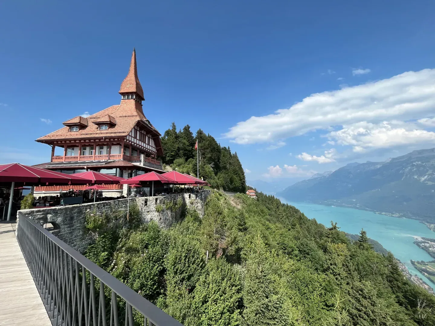 Doch die vor über einhundert Jahren erbaute Bahnanlage hält noch weitere Überraschungen offen. Das historische, denkmalgeschützte Gebäude der Talstation beispielsweise. Oder die technischen Besonderheiten dieser Standseilbahn. Eine Gams, die ganz ungeniert auf den Gleisen umherspringt. Oder die bombastische Aussicht, die sich langsam zu öffnen beginnt, während man auf den Harder Kulm fährt.