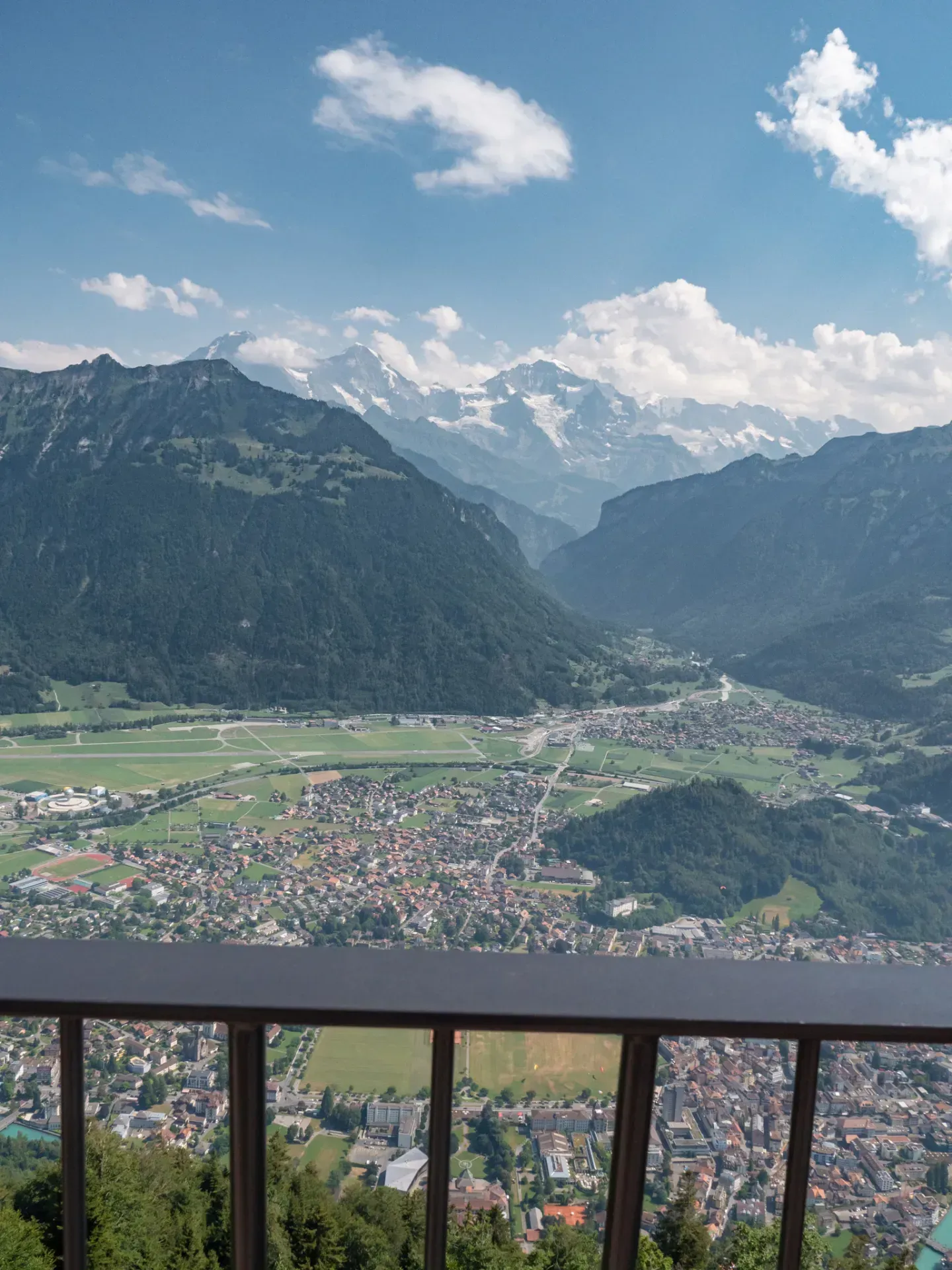 Und so lassen Katja und Fabien die Eindrücke erstmal auf sich wirken. Die beiden glücklichen Gewinner, Mutter und Sohn aus dem Schwarzwald, sind gerade erst mit der Bahn angereist und schaffen sich auf dem Harder Kulm einen ersten Überblick. Dieser Aussichtspunkt ist zwar kein wirklicher Gipfel, aber dennoch ein ausgesprochen lohnendes Ziel. Denn vom Zwei-Seen-Steg ist nicht nur die umliegende Region, sondern auch das wohl berühmteste Dreigestirn der Alpen zu sehen. Eiger, Mönch und Jungfrau präsentieren sich hier von einer besonders eindrücklichen Seite. Und selbst die Bergstation auf dem Jungfraujoch – Top of Europe, ist mit dem Fernglas gut zu erkennen. Der erste Eindruck? Überwältigend!