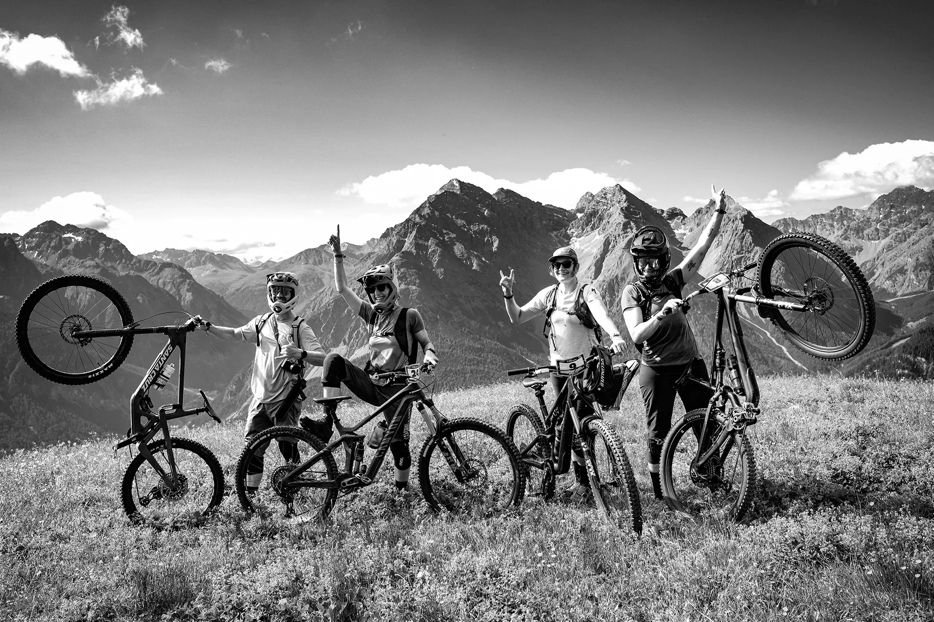 Staub wirbelt auf. Das Vorderrad beisst sich in den schmalen Trail, während sich das Pano-rama aus schroffen Gipfeln und schier endlosen Arvenbäumen öffnet. Kein Warm-up, kein Abtasten. Die Route ist neu, der nächste Anstieg fordernd, die Abfahrt ein Rausch. Der Prolog beginnt, wie Enduro gedacht ist: direkt und ungefiltert. Die Rider stürzen sich blind auf die erste Stage – in eine Welt aus losen Steinen, engen Spitzkehren und verwurzelten Waldpassagen. Jeder Tritt zählt. Wer hier fährt, sucht mehr als Trails: Gemeinschaft, Grenzerfahrung und Geschichten, die sich am Lagerfeuer weiterdrehen.