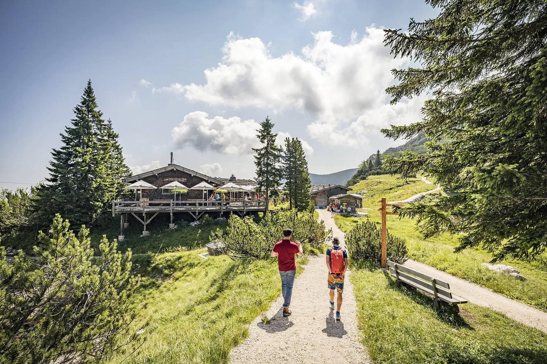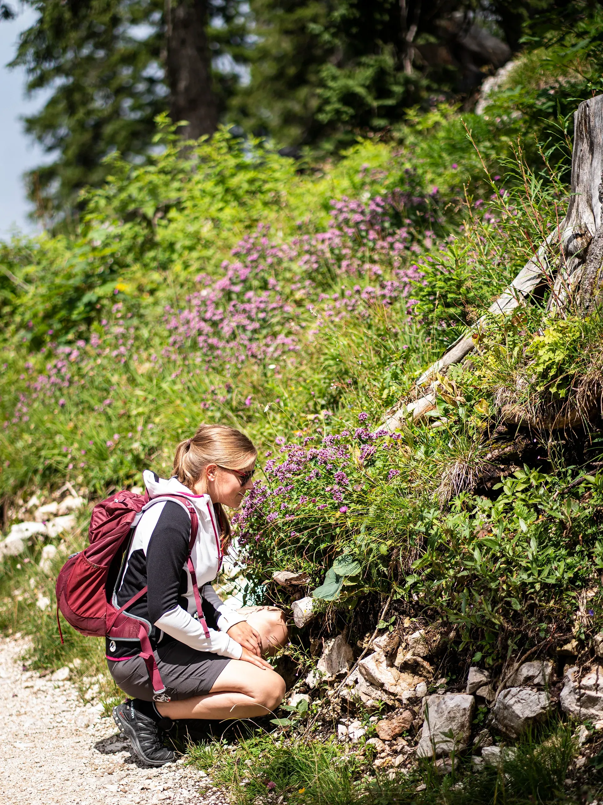 Für Wanderbegeisterte bietet sich zum Beispiel eine Fahrt mit der Predigtstuhlbahn – der weltweit ältesten Großkabinenbahn – an. Oben angekommen eröffnen sich zahlreiche Wege, die durch alpine Flora und ein Meer aus Latschenkiefern zur Schlegelmulde führen. Die Panoramablicke auf die Berchtesgadener und Chiemgauer Alpen machen diesen Ausflug zu einem inspirierenden Erlebnis.