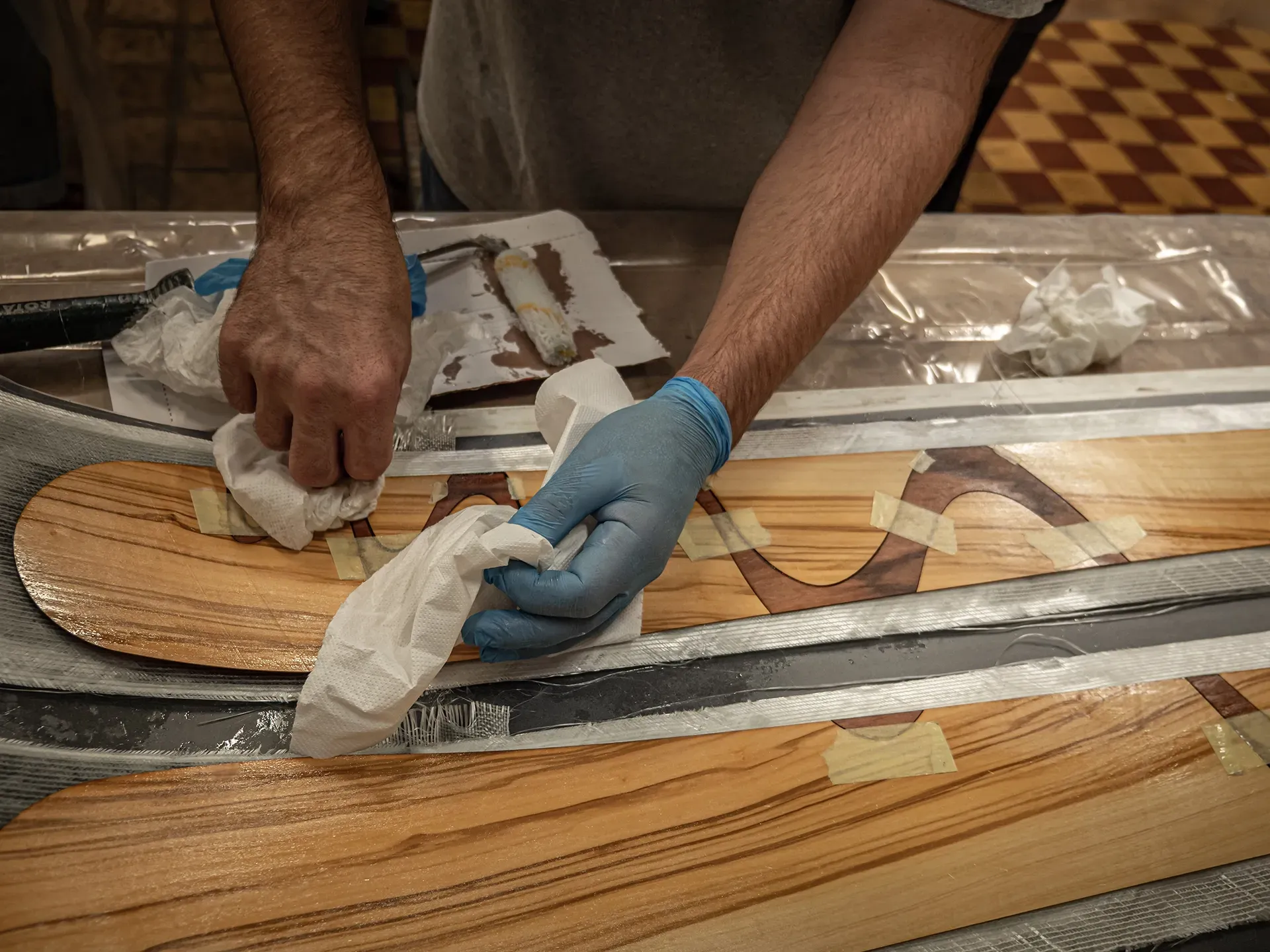Ein Jahr zuvor: In Gedanken bastle, füge und klebe ich meinen Ski langsam zusammen, werfe alles wieder über den Haufen, fange erneut an und fertige eine Skizze. Diese sende ich schließlich nach Innsbruck. Empfänger: SPURTart. Michi Freymann und Peter Pfeifer bearbeiten meine Idee weiter, bereiten alles für den Workshop vor. Die beiden SPURart Gründer wissen, worauf es ankommt. Hochwertige Materialien. Höchste Präzision. Aktuellste Fertigungsmethoden. Und natürlich jede Menge Spaß – denn ohne den geht gar nichts.