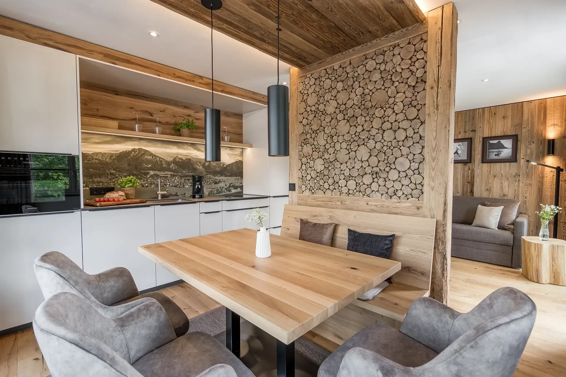 Sanfter Holzgeruch umschmeichelt die Nase. Fingerspitzen gleiten über Echtholz. Unter den Fußsohlen angenehme Steinfliesen. Durch die bodentiefen Fenster fällt der Blick sofort auf die umliegenden Berge. Hier heißt es ankommen und ins Staunen geraten. Unsere sechs neuen Ferienwohnungen – ruhig und zentral in Oberstdorf gelegen – sind ein Fest für die Sinne und alle mit 5 Sternen ausgezeichnet. Zwischen 60 und 100 Quadratmeter groß, vereinen sie Dorfcharakter & Naturverbundenheit mit Eleganz und hochwertiger Ausstattung. Ob für gemütliche Tage zu zweit, den Wanderurlaub mit Freunden oder die Mehr-Generationen-Familienauszeit in den Ferien – dank unterschiedlicher Wohnungsgrößen und separaten Schlafzimmern ist für jeden die passende Suite dabei. Für Sie reserviert: Die große Tiefgarage sorgt für mehr Komfort bei der Anreise und während des gesamten Aufenthaltes.