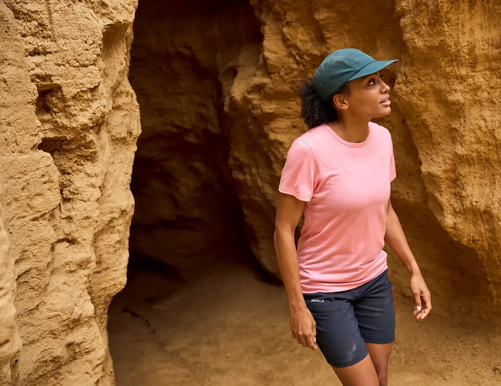 Dafür machen sich die Norweger die natürlichen Eigenschaften der Wolle zunutze – Merino ist temperaturregulierend, antibakteriell und geruchsneutral. Und damit das perfekte Material für den Sommer: Die Active Tee Linie mit 130 Gramm ist das leichteste Material von Devold für warme, aktive Tage. Das T-Shirt aus 70 Prozent Merino und 30 Prozent Tencel™ verspricht hohe Atmungsaktivität und schnellen Feuchtigkeitstransport bei hoher Transpiration. Die geruchsneutralisierenden Eigenschaften sorgen dafür, dass auch bei intensiven Aktivitäten keine unangenehmen Gerüchte entstehen. Nach mehrmaligem Tragen reicht ein Auslüften an der frischen Luft. Weniger Waschen spart Geld, schont die Umwelt und hält das Shirt lange schön.
