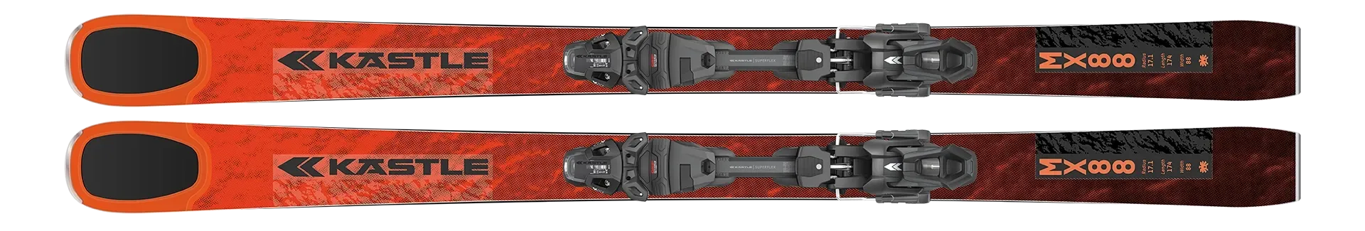 Der mit Titanal verstärkte Holzkern, ein innovativer Sidecut mit Fast Grip in der Schaufel und am Skiende sowie die klassische Sandwich-Sidewall-Konstruktion aus dem Rennsport sind das Herzstück der MX Line. Sie machen die neuen Modelle zum besten Begleiter für alles, was der Berg zu bieten hat. Die neue durchgehende Superflex Base mit Metallverstärkung, in Kombination mit der K12 PRW GW Bindung, ermöglicht zusätzlich eine direkte Kraftübertragung vom Schuh auf den Ski. So entfesseln die Kästle MX-Modelle die perfekte Allmountain-Performance.