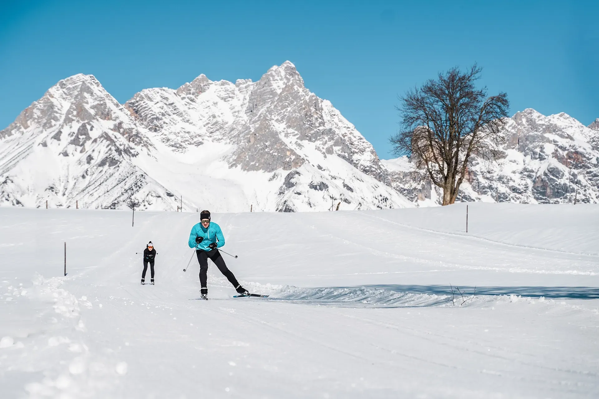 Ob Anfänger oder Experte, Groß oder Klein, Genießer oder Abenteurer – im Nordic Park findet jeder eine Lieblingsaktivität, denn Vielfalt und Spaß sind dort garantiert. Während die Eltern auf dem abwechslungsreichen Loipennetz am Ritzensee unterwegs sind, startet der Tag für die Kinder actionreich im Fun & Snow Park. Hier wird nicht nur reine Technik trainiert, hier wird das Langlaufen auf spielerische Weise an über 20 Stationen erlernt und geübt. Wobei man sich nach ein paar Übungsrunden schon in die Steilkurve, auf die kleinen Schanzen und in den Slalomkurs wagen kann. Mark Hauser, Lehrer an der Nordischen Schimittelschule Saalfelden und Langlauf- sowie Biathlon-Trainer, erklärt den Reiz des Nordic Parks: „Als Jungvater zweier Töchter ist es mir wichtig, dass meinen Kids Langlaufen Spaß macht. Im Nordic Park Saalfelden mit seinen Wellen, Schanzen und Steilkurven ist dies der Fall. Sie erlernen spielerisch Langlaufen und verbessern ihre koordinativen Fähigkeiten in der wunderschönen Winterlandschaft von Saalfelden Leogang.“