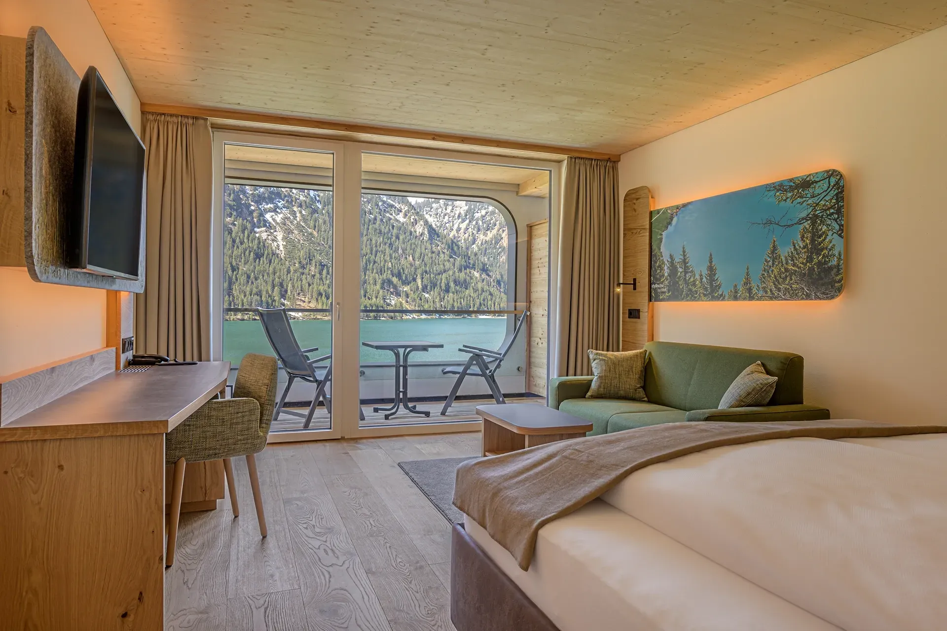 Seit April 2019 bereichert das haldensee im Tannheimer Tal die Tiroler Ferienregion als adults only Hotel. Unter dem Motto „Bühne frei für die Natur“ begeistert das Haus inmitten der idyllischen Berglandschaft direkt am Haldensee. Breite Fensterfronten im Inneren sowie in den 60 Zimmern und Suiten geben den Blick auf das Wasser frei.