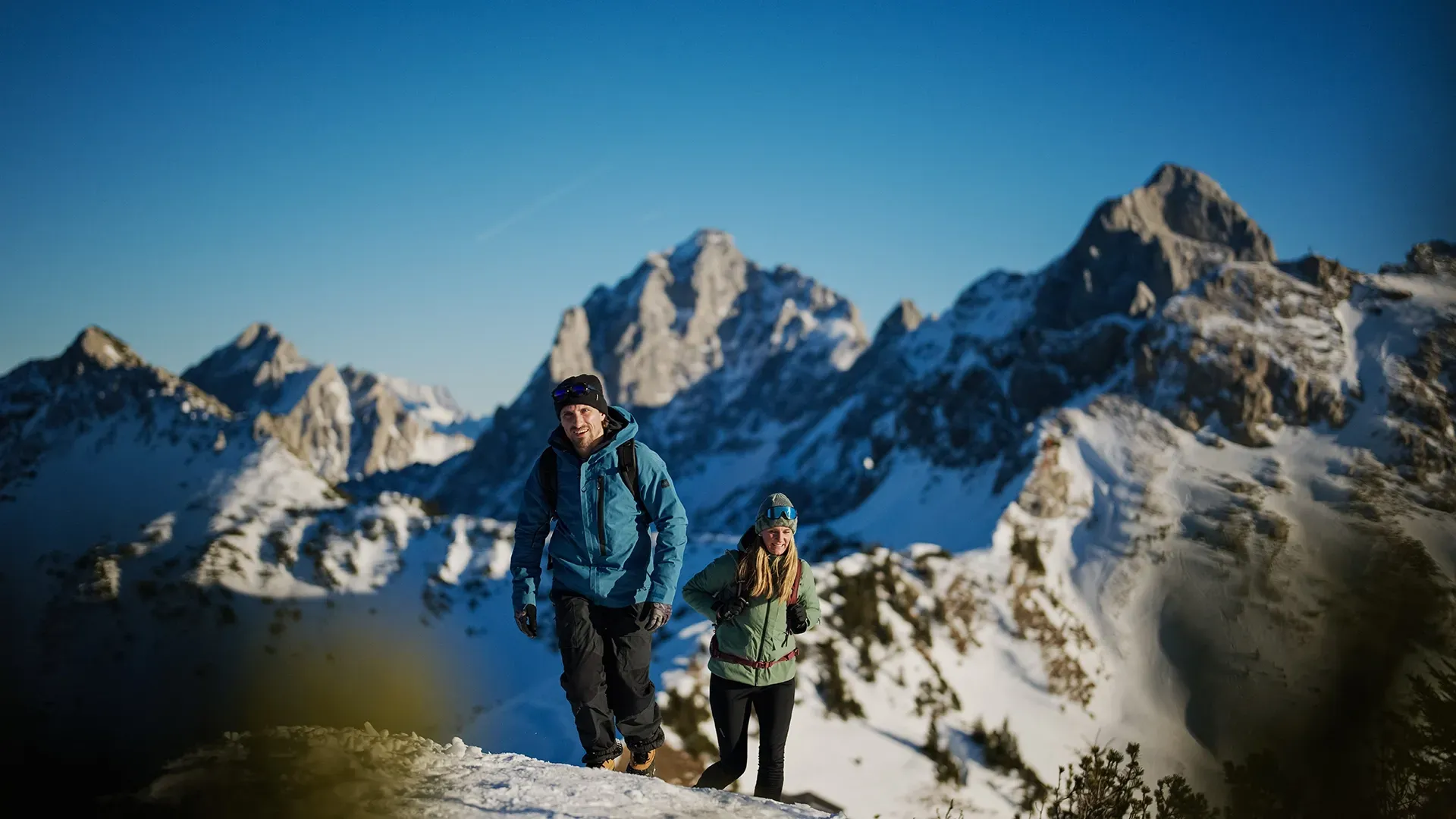 Doch auch abseits der Spuren ist der Winter im Tannheimer Tal ein Genuss. Über 81 Kilometer geräumte Winterwanderwege führen von Dorf zu Dorf – vorbei an Kapellen, Bauernhöfen und urigen Gasthäusern. Ein Spaziergang durch den verschneiten Talboden, während die Sonne die Schneekristalle glitzern lässt, ist Erholung pur. Wer mag, schnallt sich Schneeschuhe an und zieht seine Spuren in Hänge.