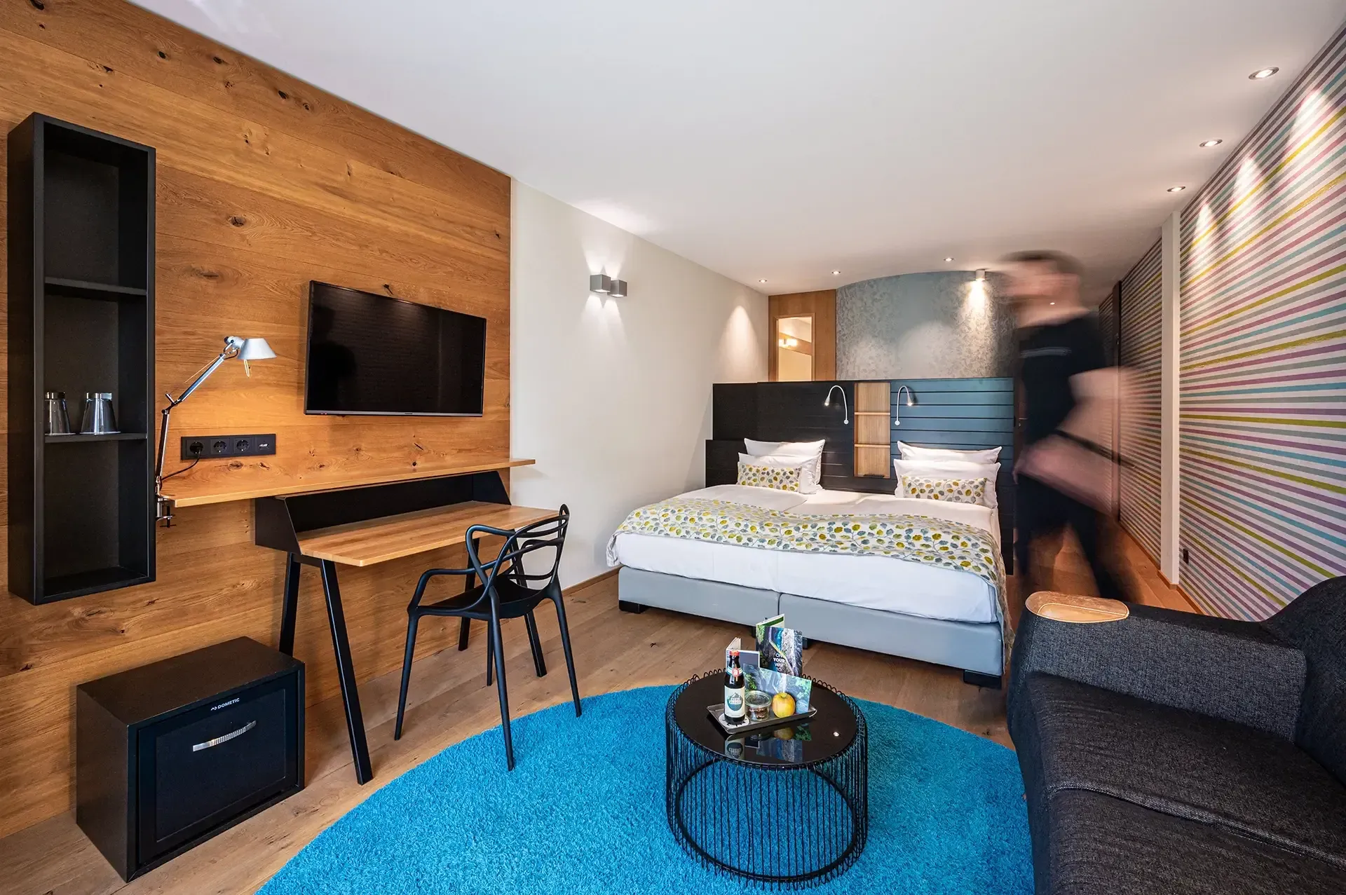 Individuell, bunt und luxuriös – die 27 Zimmer und Suiten im Freiberg haben eines gemeinsam: Qualität, Komfort, Wohlgefühl und Ausstrahlung. Mit viel persönlicher Verbundenheit, mit Mut, geschulter Hand und Fingerspitzengefühl wurde Altes mit Neuem verbunden – Bauhaus trifft Bauernhaus. Überraschend stimmig und alles andere als Einheitsstil.